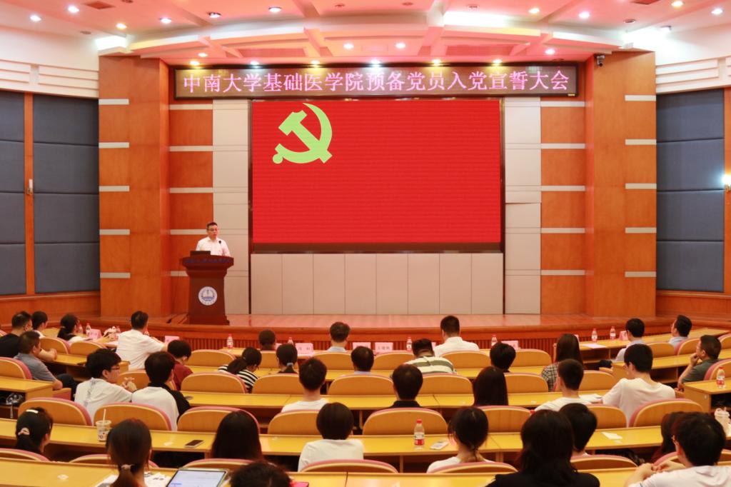 2024年7月1日中午,国产探花 基础医学院分党校预备党员培训暨入党宣誓大会在湘雅新校区福庆楼四楼学术报告厅举行,院党委委员、专职组织员、支部书记、54名预备党员、正式党员与入党积极分子代表参加会议。会议由院党委委员胡忠良主持。