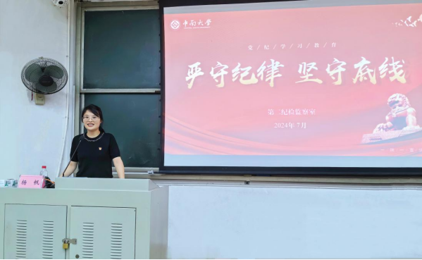 2024年7月2日,基础医学院在湘雅新校区福庆楼T105教室开展“一院一宣讲”党纪学习教育,校纪委第二纪检监察室主任杨帆作题为《严守纪律,坚守底线》的专题宣讲,院领导王慷慨、熊炜、刘俊文、黄河、冯虹、王宽松、周勇全体教职工参会学习。会议由院党委副书记冯虹主持。