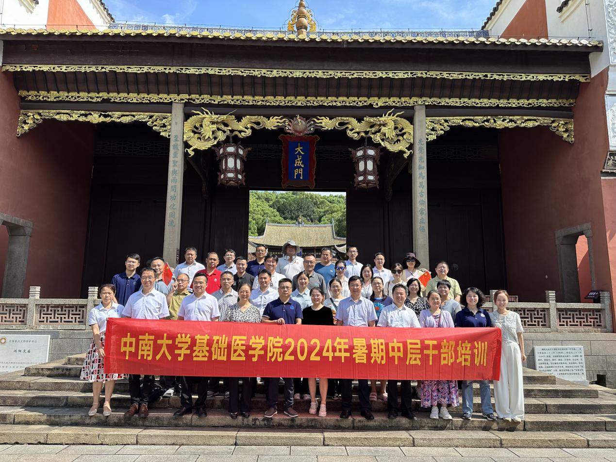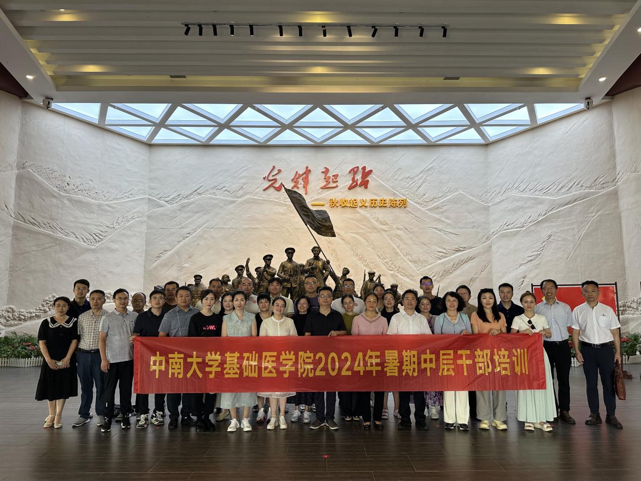 为深入学习贯彻党的二十届三中全会精神,教育引导广大党员干部切实将思想和行动统一到习近平总书记重要讲话精神和党中央决策部署上来,进一步提升我院中层干部抓改革、谋发展的思维和能力,8月22日-23日,基础医学院赴“将军之乡”、红色老区——长沙浏阳市开展2024年暑期中层干部培训。学院领导、各系室所主要负责人、各支部书记和科级干部参加培训。