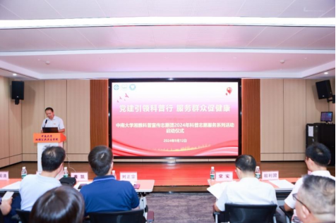 2024年9月12日下午,国产探花 基础医学院与湘雅公共卫生学院联合举办的2024年科普志愿服务系列活动启动仪式在湘雅公共卫生学院学术报告厅隆重举行。本次活动以“党建引领科普行,服务群众促健康”为主题,旨在通过科普教育活动,提升全民科学素质,促进健康中国建设。