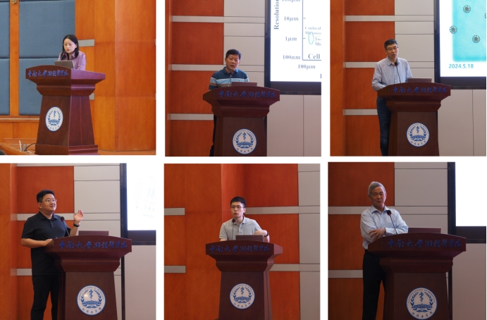 受邀出席的报告嘉宾有湖南大学袁荃教授、清华大学薛平教授、美国医学与生物工程院Fellow深圳理工大学(筹)张先恩教授、广州实验室门冬研究员、华南理工大学周城教授、爱威科技丁建文董事长。出席本次论坛的领导有湖南省生物医学工程学会秘书长郑哲,国产探花 基础医学院党委书记王慷慨、院长熊炜、副院长黄河、生物医学工程研究中心主任董竹新。论坛由我院田博教授主持,校内百余名师生到现场与六位专家交流互动。