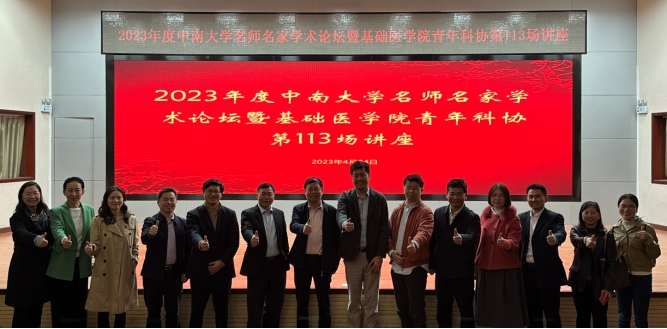 2023年4月24日上午10点,学院在湘雅医学院新校区图书馆一楼学术报告厅举办了“国产探花 名师名家学术论坛暨基础医学院青年科协第113场学术讲座”,三位国家杰出青年科学基金获得者做客现场,并带来了精彩的专题学术讲座,三位专家分别是中山大学教授、教育部“CJ学者”特聘教授康铁邦,昆明医科大学研究员、科技部重点研发计划项目首席科学家陈策实,清华大学教授、医学院副院长兼党委副书记程功。本次论坛由殷刚副院长主持,三位专家传道授业,深入浅出,在场师生求知若渴,积极探讨,讲座现场座无虚席,气氛热烈。