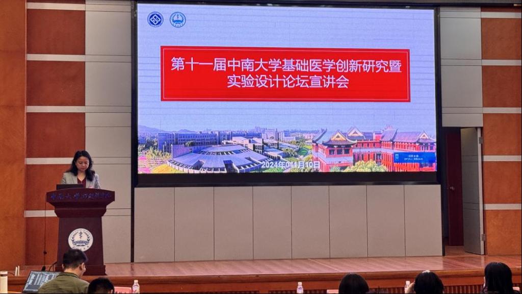 宣讲会伊始,曾艺副院长为宣讲会致辞,指出基础医学创新研究暨实验设计论坛是我国基础医学领域学生学科竞赛的最高级别,也是基础医学类中学术水平顶尖、规模宏大、影响力深远、参赛院校众多的全国性大赛。在第十届全国大学生基础医学创新研究暨实验设计论坛中,我校取得了7金3银1铜的好成绩,希望湘雅学子能在论坛中充分展现自身风采,为基础医学研究的深入发展注入新的活力。
