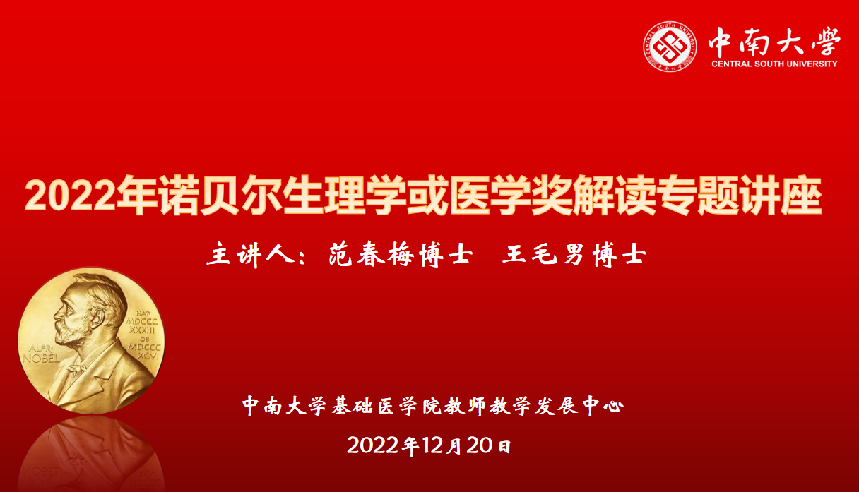 基础医学院教师教学发展中心举办“2022年诺贝尔生理学或医学奖解读专题讲座”