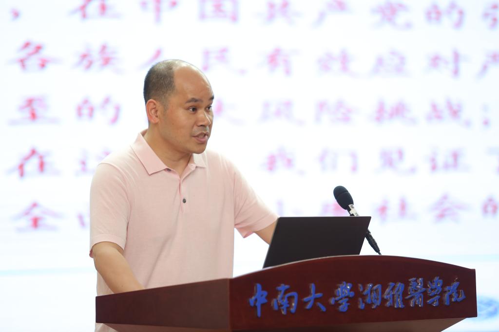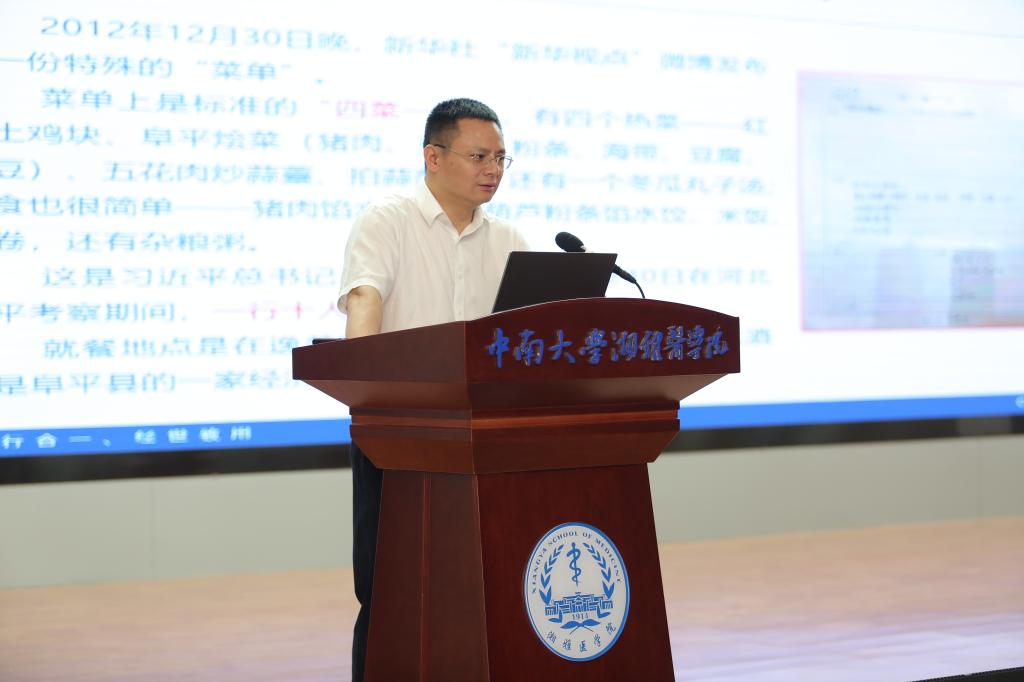 本科生代表王观明、研究生代表钟文静先后发言。王观明同学动情地说到,身为中南人,我们也许各奔天涯,追求科研的未知、投身教育的热忱、服务医疗卫生的使命;但无论前方何景,我们都将矢志不渝地承担身为湘雅人的责任和使命,秉承“公勇勤慎”的本色,“诚爱谦廉”的品格:“求真求确、必邃必专”的精神!博士毕业生代表钟文静表示,在中南硕博七年收获颇多,一路以来,有传道授业的老师为自己指引学术之路,有志同道合的伙伴共同挥洒青春热血;中南教给我们,真正有意义的事情,都不是轻轻松松就能完成的。我们如果没有背负压力前行,则永远不知道自己的潜力在哪里;她始终相信力行“向善、求真、唯美、有容”,终将迎来美好的未来。