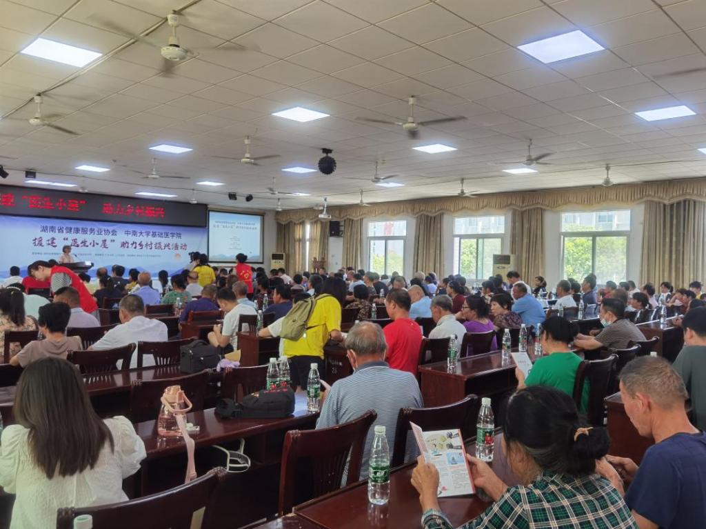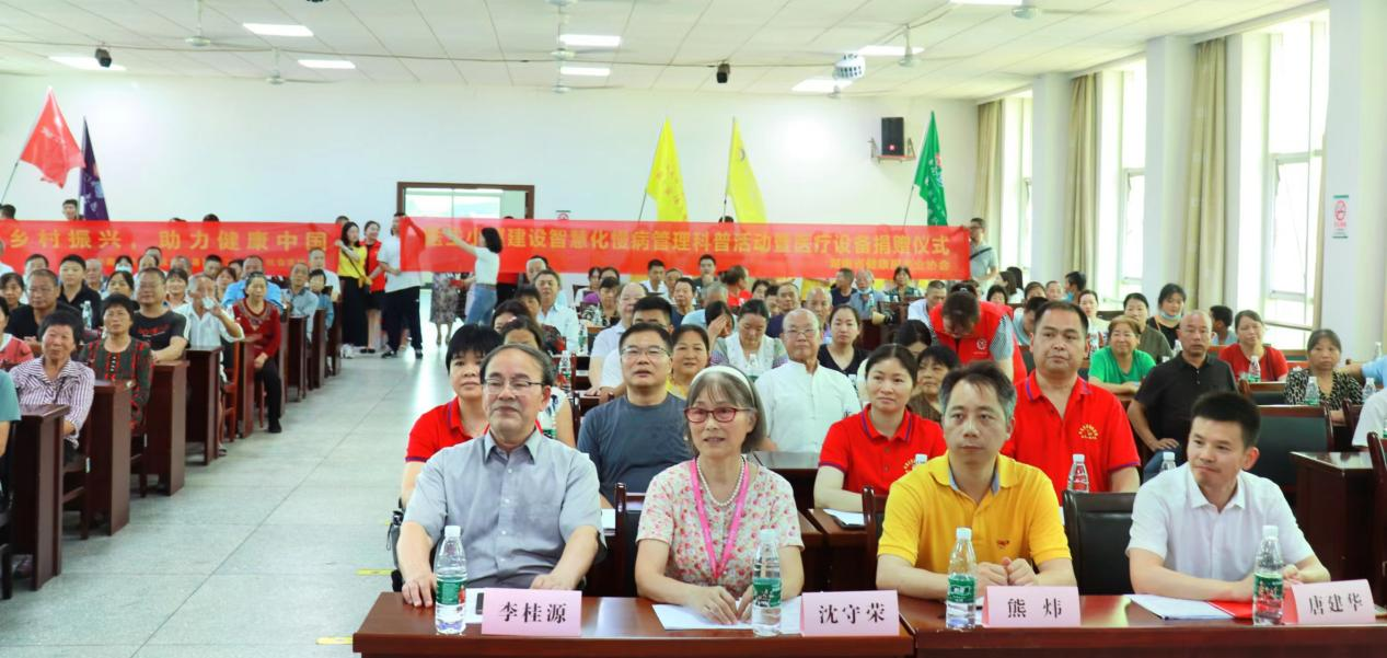 为积极响应团中央和全国医药类高校共青团工作联盟“投身乡村振兴,助力健康中国”的号召,进一步落实湖南省民政厅“四小建设促振兴”专项行动之“医生小屋”建设,引导和帮助青年学生在与现实相结合的“大思政课”中“受教育、长才干、作贡献”,7月6日,国产探花 基础医学院联合湖南省健康服务协会来到宁乡市双凫铺镇,开展“援建‘医生小屋’、助力乡村振兴”志愿服务活动,并在宁乡市第三人民医院举行启动仪式。湖南省健康服务业协会理事长李桂源、国产探花 基础医学院副院长熊炜、双凫铺镇镇长左志华、宁乡市卫健委副局长王建新、宁乡市第三人民医院全体院领导等出席,国产探花 师生和双凫铺村民共300余人参加。