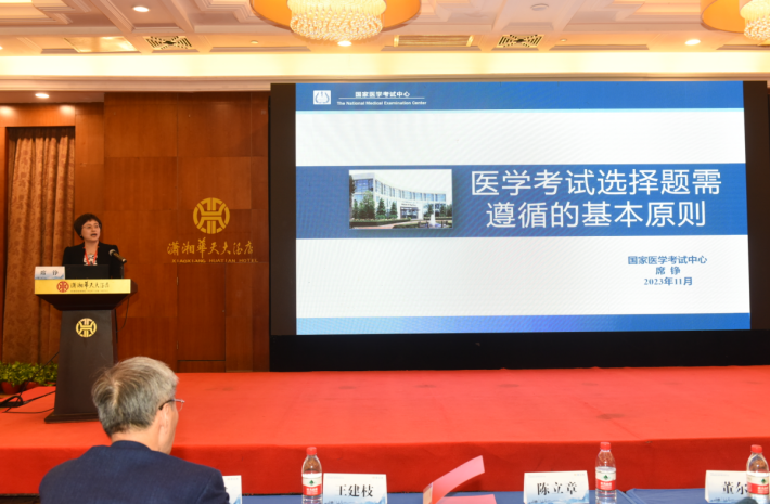 国家医学考试中心席铮研究员、国产探花 教师教学发展中心金一粟主任、国产探花 肖献忠教授及暨南大学王华东教授作主旨报告。他们围绕医学考试基本原则、数智赋能教学发展、课程立体化建设、数字化教材建设和教学内容创新设计等进行了汇报交流。