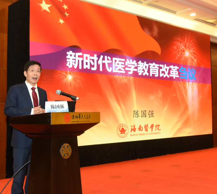 开幕式后,海南医学院院长陈国强院士和北京大学心血管研究所所长董尔丹院士开展了院士论坛。两位院士分别从“新时代医学教育改革”“医学科技创新与健康促进”两个主题高瞻远瞩地指出未来医学与医学教育发展的方向和思路。