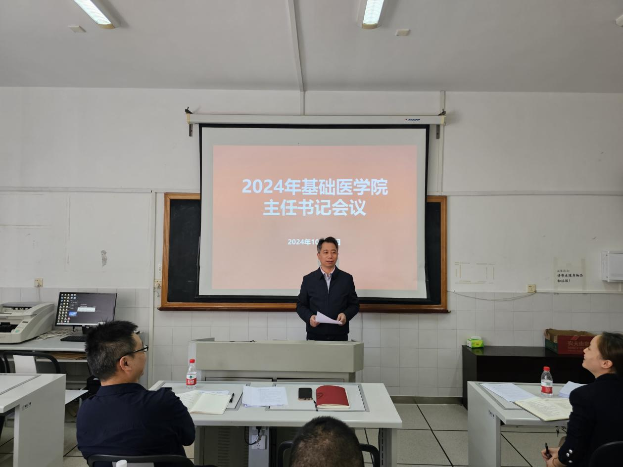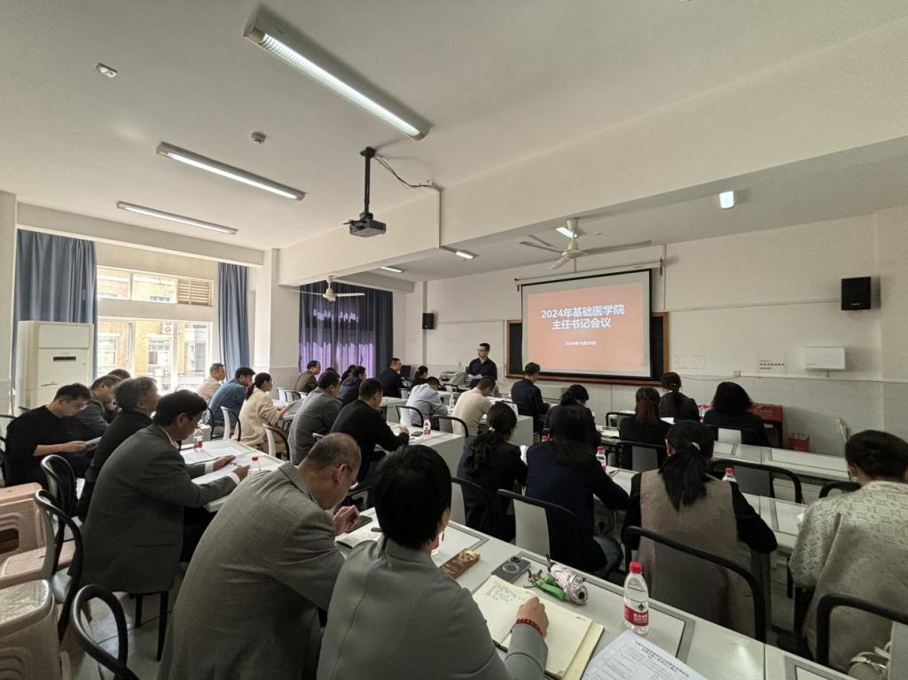 10月30日中午,基础医学院在湘雅新校区孝骞楼352教室召开2024年下半年主任书记会议。全体在院领导、各系所负责人、各支部书记和办公室工作人员参加会议。会议由熊炜院长主持。
