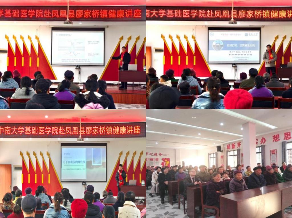 14日,老师们来到了全国文旅赋能乡村振兴的典范和新时代红色地标—凤凰县廖家桥镇菖蒲塘村。基础医学院的3位知名教授为村民们带来了精彩的科普讲座。国务院特殊津贴专家、基础医学院原院长、病理生理学系肖献忠教授以其深厚的学术功底,深入浅出地为村民们解读了《盐与健康》的奥秘,强调了合理膳食对预防疾病的重要性;微寄免教工党支部书记、医学寄生虫学系主任蒋立平教授围绕《把好口关,远离寄生虫病》的主题,以生动的案例讲解了寄生虫病的预防知识,受到了村民们的热烈欢迎;教工第一党支部副书记、组织学与胚胎学系主任肖玲副教授则以《关于高血压的那些事》为题,为村民们上了一堂健康课,提高了大家对高血压病的认识和自我管理能力。
