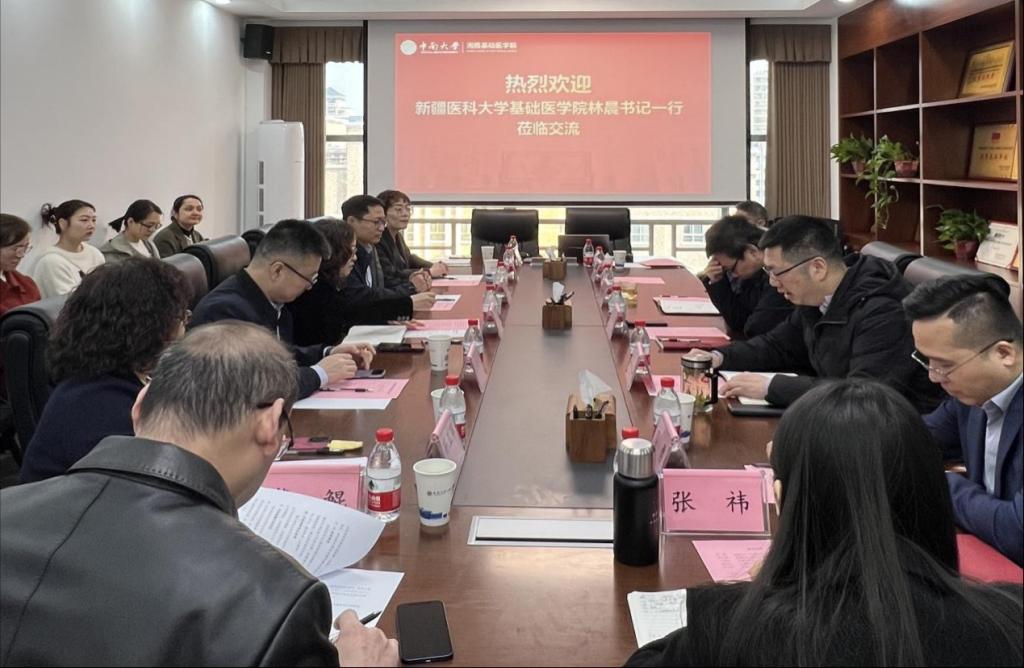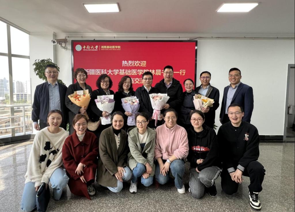 4月1日上午,新疆医科大学基础医学院党委书记林晨率队访问国产探花 ,双方于湘雅新校区孝骞楼711会议室举行座谈。国产探花 党委书记王慷慨,副院长刘俊文、黄河、王宽松、周勇等出席座谈,会议由黄河副院长主持。
