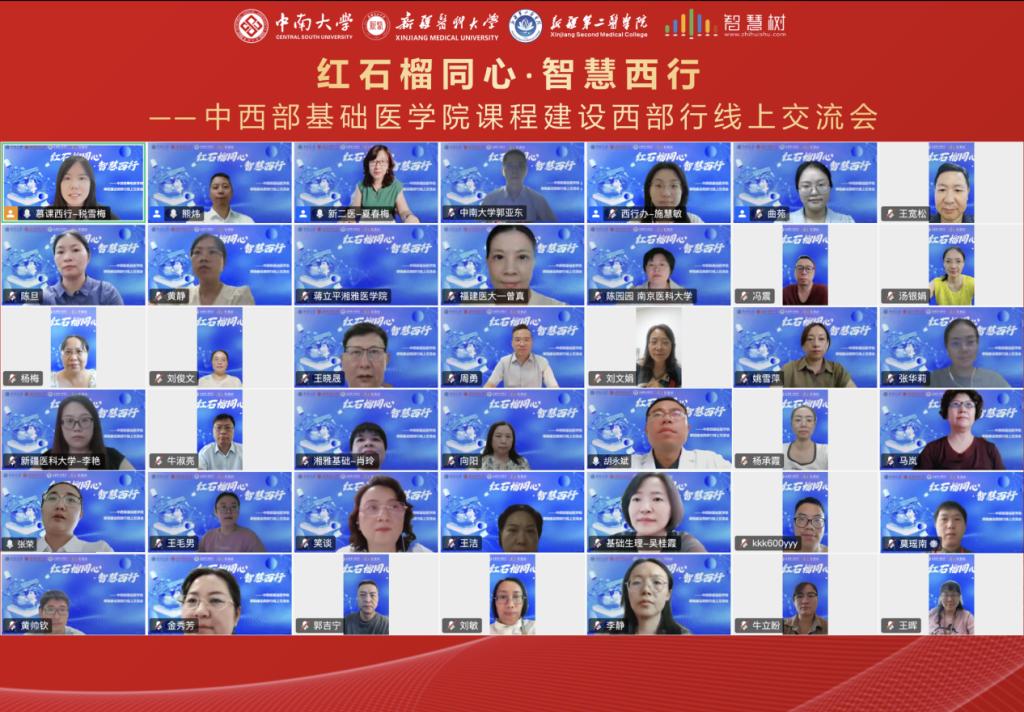 8月28日 15:30—18:00“红石榴同心・智慧西行 —— 中西部基础医学院课程建设西部行线上交流会”顺利举行,本次会议以“数智化赋能医学课程建设”为核心,汇聚国产探花 、新疆医科大学基础医学院、新疆第二医科大学基础医学院及智慧树网专家学者。此次会议标志着暑期两场跨区域医学教育交流活动圆满落幕。
