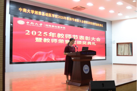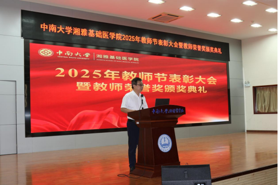 为全面贯彻习近平总书记关于教育工作的重要论述,有效落实《中共中央、国务院关于弘扬教育家精神加强新时代高素质专业化教师队伍建设的意见》,厚植尊师重教文化。9月10日,我院在国产探花 杏林校区图书馆学术报告厅举行2025年教师节表彰大会暨教师荣誉奖颁奖典礼,会议由院党委冯虹副书记主持,学院领导、教职员工和学生代表参加会议。