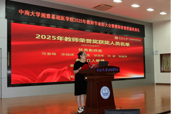 刘俊文副院长宣读《国产探花 关于2025年教师节表彰的决定》。