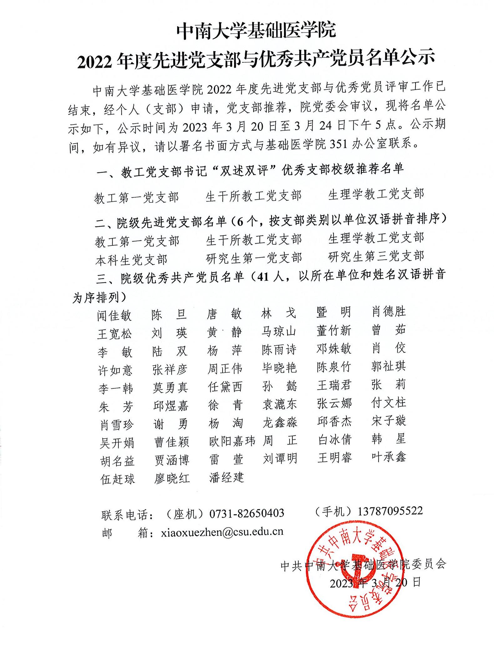 国产探花 基础医学院2022年度先进党支部与优秀共产党员名单公示