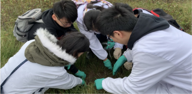 早上7时30分,老师带领同学们乘坐大巴前往血吸虫疫区现场调查实践地——岳阳县鹿角镇。到达目的地后,带教老师首先为同学们详细地介绍了疫点情况,并讲授现场查螺的方法、要求及注意事项。根据带教老师的指导要求,学生们在做好防护措施后开始现场查螺,并顺利地在现场的草丛堆中找到了血吸虫的中间宿主——肋壳钉螺,同学们从查螺经历中获得了宝贵的一手资料以及深刻的实践体验。查螺结束后,指导老师给同学们拓展了血吸虫的防治知识,例如感染血吸虫后不同阶段的用药方案等,还介绍了我国血吸虫艰辛的防治史,使同学们对血吸虫防治工作的意义有了进一步的认识和理解。