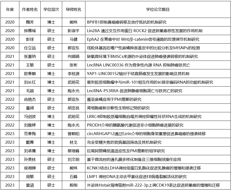 近日,湖南省教育厅下发了《关于公布2023年湖南省优秀博士硕士学位论文名单的通知》(湘教通〔2023〕356号),我院有7篇博士硕士学位论文获评优秀,篇数创历史新高。今年,湖南省评选了100篇优秀博士学位论文,我校获评32篇,基础医学院获评3篇,篇数在二级学院中遥遥领先;此外,学院推荐的4篇硕士学位论文全部获评湖南省优秀。现将近四年我院获评的省优秀学位论文公布如下: