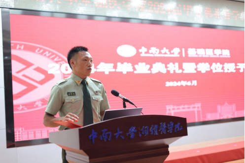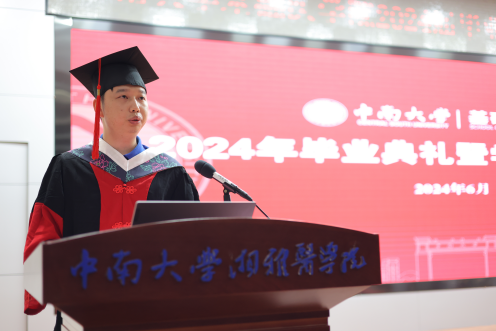 教师代表余正副教授为所有的毕业生们送上最真挚的祝福,并寄语毕业生“不忘初心,砥砺前行,坚守初心,保持对知识的渴望和对梦想的追求;勇于担当,传承湘雅精神,在面对医学难题时,不畏艰难,勇于创新,为人类的健康事业贡献自己的力量;珍惜友情,感恩遇见,在未来的日子里,无论身处何方,都要保持联系、互相支持、共同成长