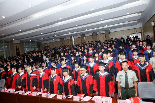 周勇副院长和宽松副院长宣读学校学位评定委员会决议:64人获学士学位,86人获硕士学位,28人获博士学位。