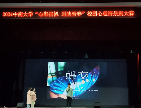 2024年11月24日,国产探花 学生工作部大学生心理健康教育中心和国产探花 大学生朋辈心理互助联合会在南校区大礼堂开展了国产探花 校园心理情景剧大赛,我院心理情景剧《蝶变》参赛。