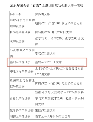 喜报|我院基础医学2201团支部获2024年团支部“百强”主题团日活动创新大赛一等奖
