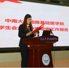 大会还听取并审议由湘雅基础医学院第九届主席团成员李雨聪作的学生会工作报告。报告系统梳理了过去学生组织在学术创新、文化育人、志愿服务、权益维护等方面取得的成果,未来,学院学生会将不断完善工作机制,继续发扬团结协作、勇于创新的精神,为学院的发展贡献更多力量。
